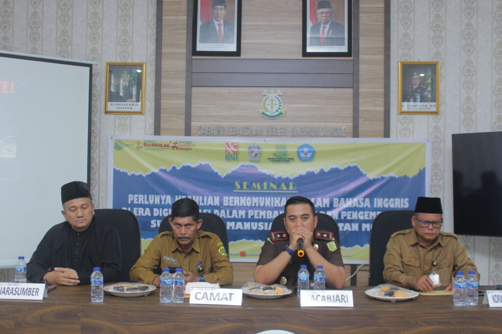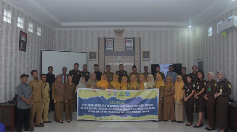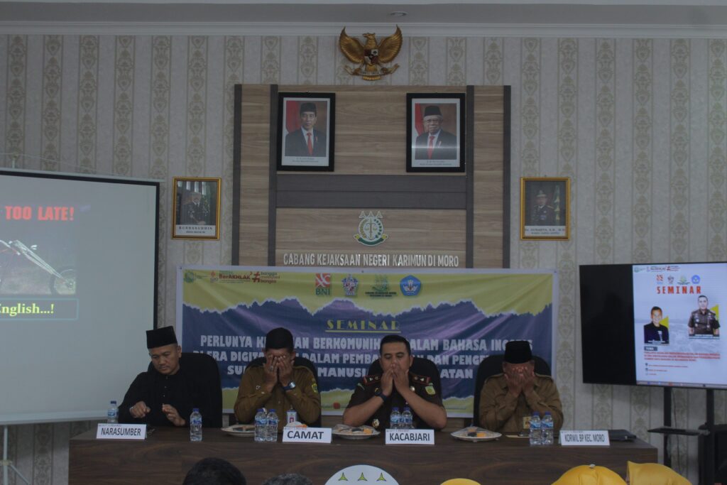 Senin, 03 Oktober 2022 telah diadakan SEMINAR dengan tema “Perlunya Keahlian Berkomunikasi Dalam Bahasa Inggris Di Era Digitalisasi Dalam Pembangunan & Pengembangan SDM di Kecamatan Moro” bertempat di Aula Cabang Kejaksaan Negeri Karimun di Moro.