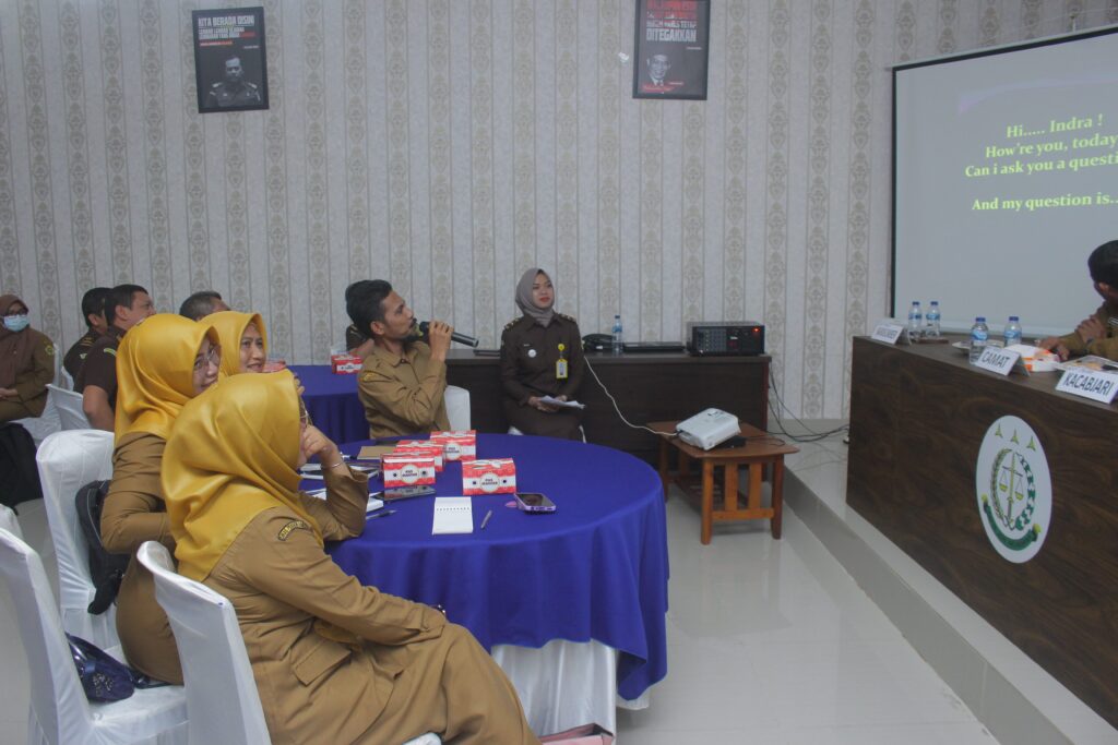 Kegiatan tersebut dihadiri oleh Lembaga Pelatihan Kerja ENGLISH CLINIC INSTITUTE, BNI Unit Moro, dan Kelompok Kerja Kepala Sekolah (K3S) Moro Bahari Dinas Pendidikan dan Kebudayaan Kabupaten Karimun serta seluruh Pegawai Cabang Kejaksaan Negeri Karimun di Moro. Adapun narasumber dalam kegitan tersebut yaitu Bapak RAJA HENDRA SUKMANA ( English Trainer di Lembaga Pelatihan Kerja English Clinic )