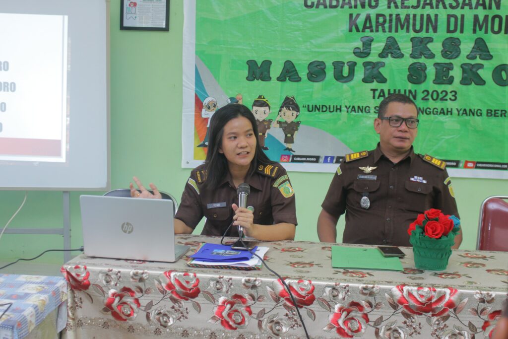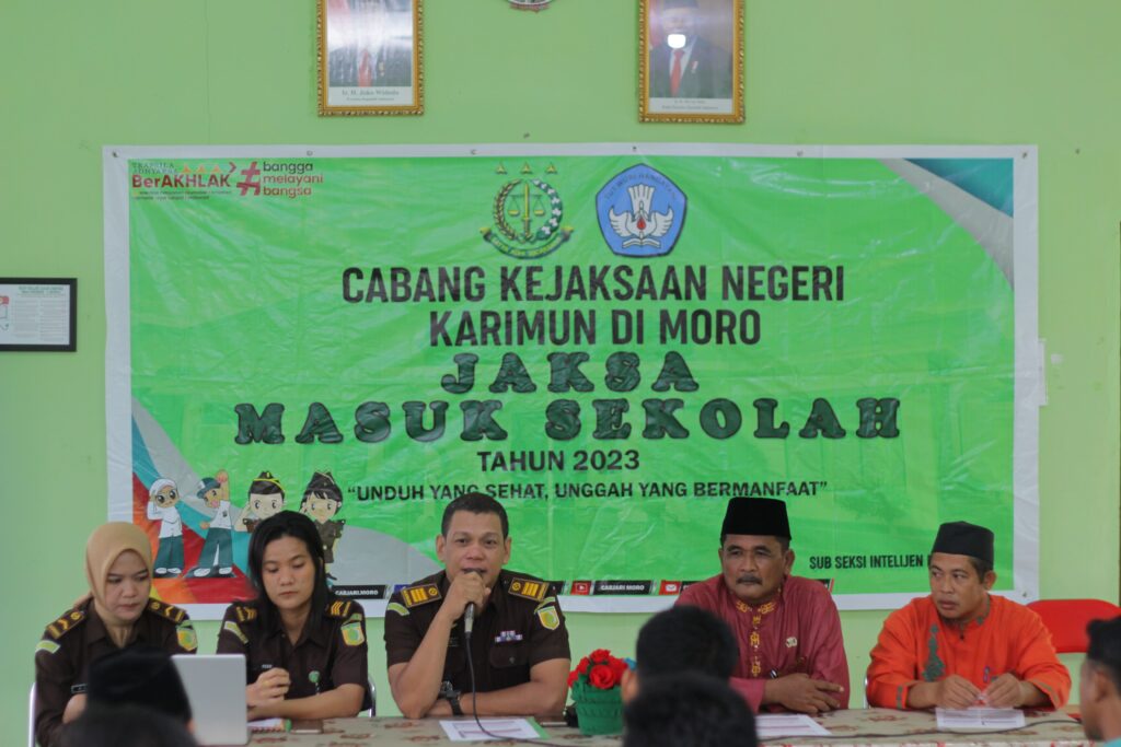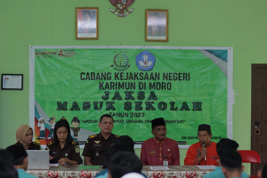 Kegiatan ini dibuka oleh Kepala Sekolah SMA N 01 Moro Bapak Heri Haryono.S.Si yang diikuti kurang lebih 50 peserta. Adapun narasumber dalam kegiatan Jaksa Masuk Sekolah ini yaitu Kasubsi Intel dan Datun Bapak T.EDY HIDAYAT dengan tema ” Membangun Budaya Internet Sehat Dan Aman ” dengan tujuan menciptakan generasi muda yang bijak pada perkembangan teknologi dan upaya pencegahan terhadap pelanggaran hukum.