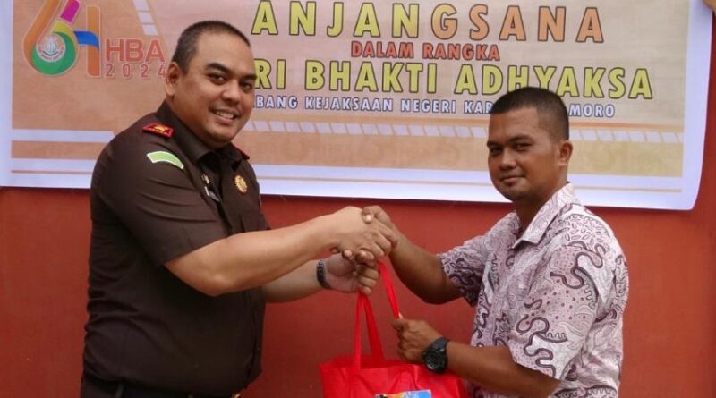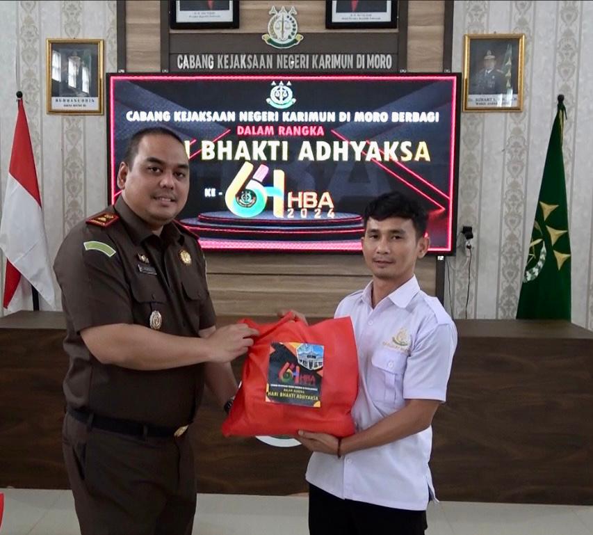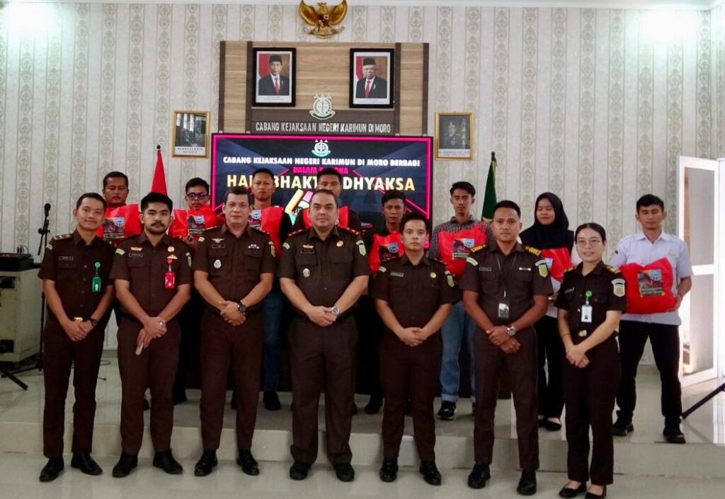 Moro – Dalam memperingati Hari Bhakti Adhyaksa (HBA) ke 64, Cabang Kejaksaan Negeri Karimun di Moro melaksanakan kegiatan Anjangsana ke rumah Purna Adhyaksa yang ada di Kecamatan Moro dan berbagi sembako kepada para PPNPN di Aula Kantor Cabang Kejaksaan Negeri Karimun di Moro pada Rabu (17/07/2024).