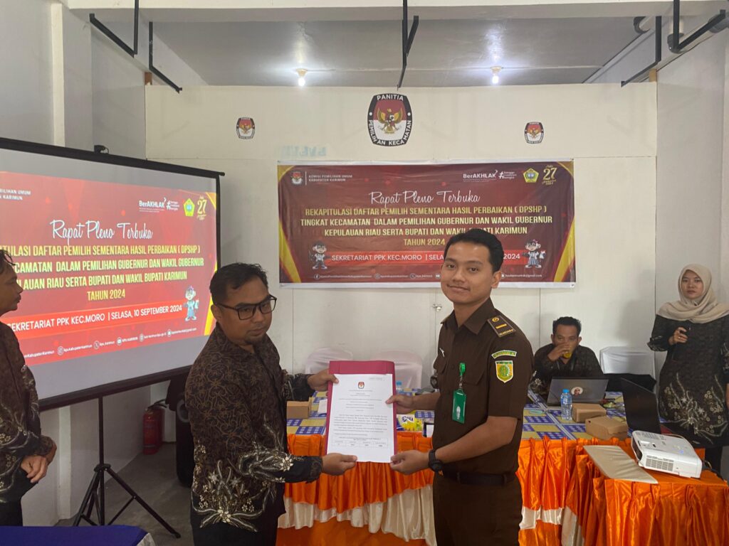 Pada acara tersebut disampaikan Laporan Rekapitulasi Daftar Pemilih Sementara Hasil Perbaikan dari Ketua PPS Kelurahan Moro, Kelurahan Moro Timur, Desa Pauh, Desa Jang dan Desa Pulau Moro dan ditutup dengan penandatanganan berita acara Rapat Pleno Terbuka dan Pemberiaan Berita Acara Rapat Pleno Terbuka Rekapitulasi Daftar Pemilu Sementara Hail Perbaikan (DPSHP) Tingkat Kecamatan dalam pemilihan Gubernur dan Wakil Gubernur Kepulauan Riau serta Bupati dan