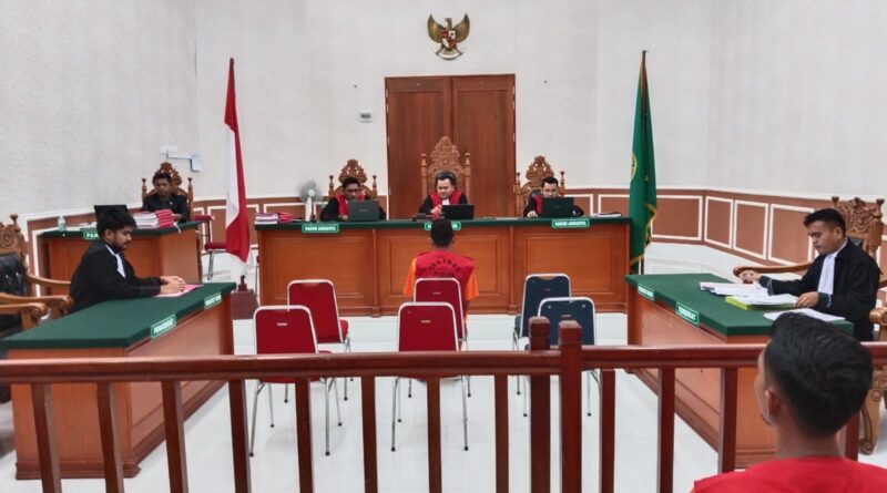 Plt. Kasubsi Pidum dan Pidsus Teriman Anugrah Halawa, S.H selaku Penuntut Umum pada Cabang Kejaksaan Negeri Karimun di Moro melaksanakan persidangan Tindak Pidana Umum an. Terdakwa Rajuni alias Jompol bin Jais dengan agenda Pembacaan Tuntutan.