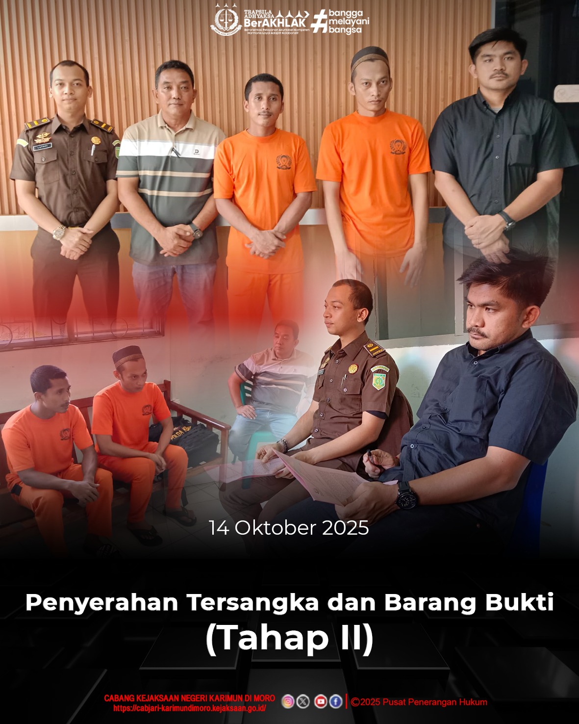 Teriman Anugrah Halawa, S.H. dan Luthfi Zulauliady, S.H. selaku Penuntut Umum pada Cabang Kejaksaan Negeri Karimun di Moro melaksanakan penyerahan Tersangka dan Barang Bukti (Tahap Il) oleh Penyidik Polsek Moro dalam perkara Tindak Pidana Pencurian dengan Pemberatan atas nama WIRID AKBAR Als IRIT Bin CHAIRUL dan SAHLAN Als SAHLAN Bin HARUN.