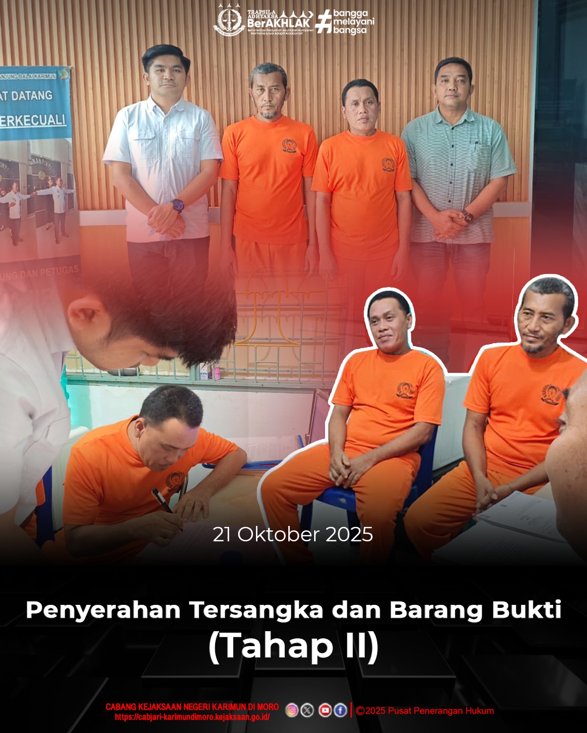 Teriman Anugrah Halawa, S.H. selaku Penuntut Umum pada Cabang Kejaksaan Negeri Karimun di Moro melaksanakan penyerahan Tersangka dan Barang Bukti (Tahap II) oleh Penyidik Polsek Moro dalam perkara Tindak Pidana Pertolongan Jahat (Penadahan) atas nama SALMAN Als DAR Bin ASMAWI dan SARI Als KOMENG Bin SARIMIN