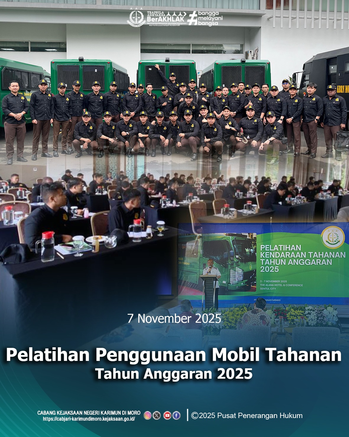 Staf Penjaga Tahanan pada Cabang Kejaksaan Negeri Karimun di Moro menghadiri Kegiatan Pelatihan Penggunaan Mobil Tahanan Tahun Anggaran 2025 yang diselenggarakan dari tanggal 3 November 2025 s.d. 7 November 2025.